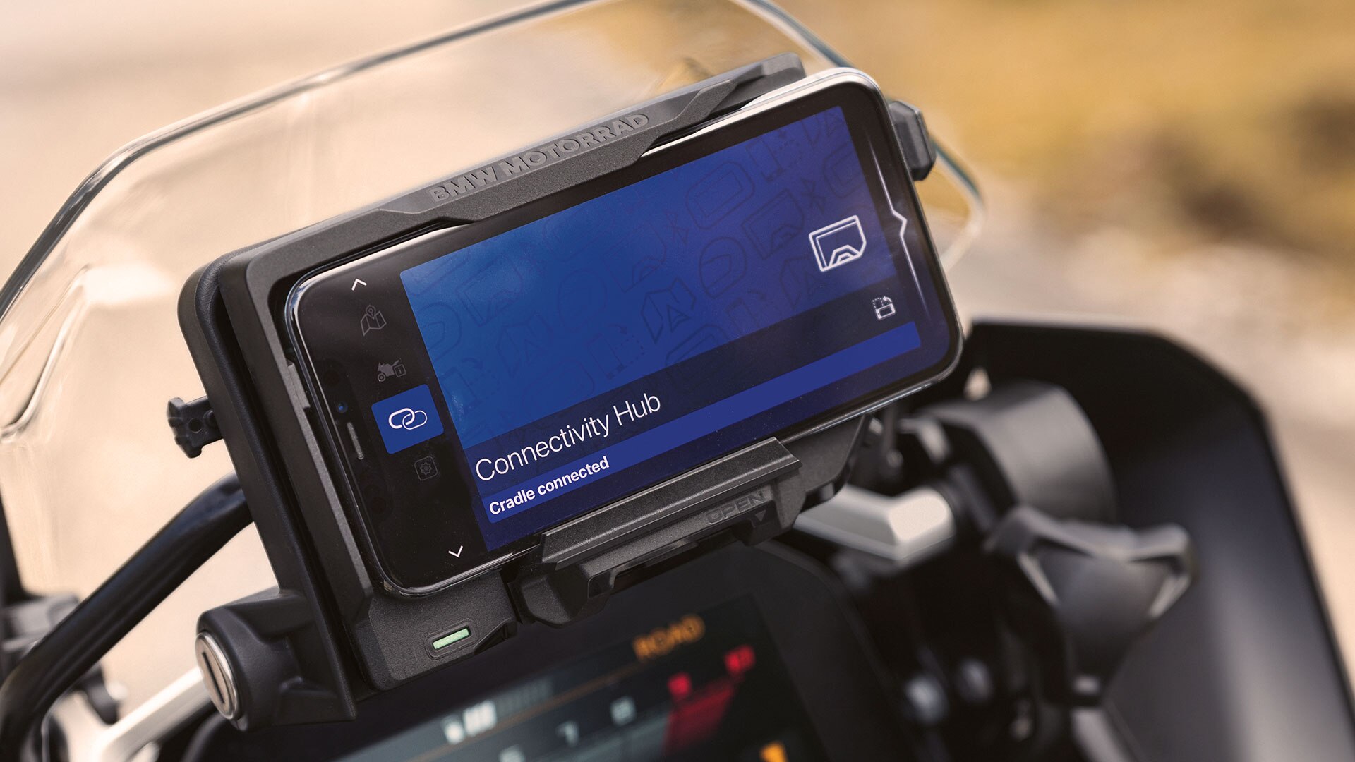 BMW Motorrad ConnectedRide products also include our smart accessories for your bike, which help you on your tours. First and foremost the ConnectedRide Navigator, which is much more than a navigation device. It connects many ConnectedRide products as well as your smartphone on its intuitive interface and becomes a hub for telephony, streaming and navigation. Or you can simply turn your mobile phone into a navigation device, in which case the BMW Motorrad ConnectedRide Cradle is just the thing for you.
