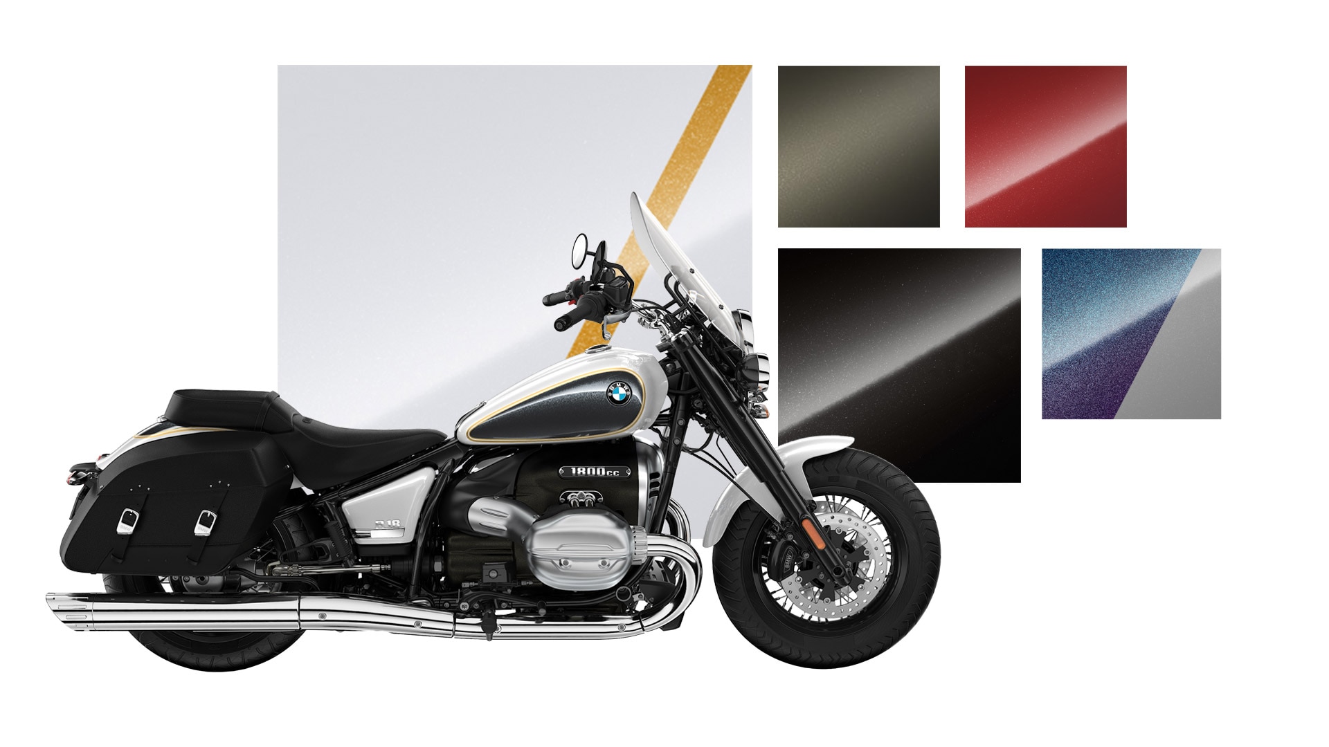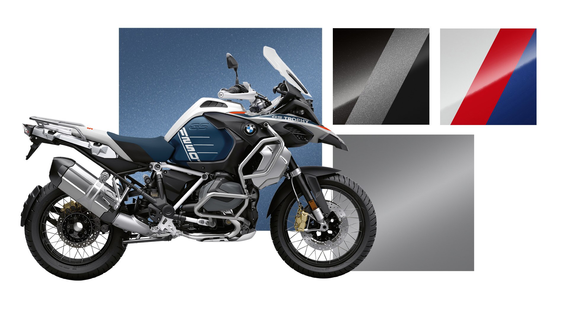 Option 719 Mineral white metallic emphasises the large surfaces of the respective bike and underlines its elegant appearance. Golden highlights accurately emphasise the highlights of the bikes. Harmonious, balanced, attractive: With its Gravity blue metallic paintwork, the bike radiates true grandeur and superiority.