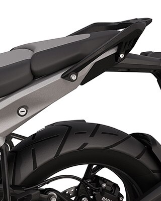 Luggage can be safely lashed to the luggage plate made from impact-resistant plastic. The plate uses the attachment element for the passenger seat and is easy to secure. In combination with the Vario cases, this creates a wide and even load platform. It can carry a payload of 5 kg, and 20 kg of luggage can be secured to the sides.
