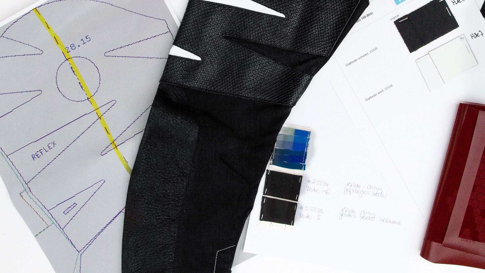 We could see the finish line, but there was still work to do. First, it was important for us to develop a suitable and innovative look for the suit. To do so, we tested various structures and finishes. In the end, we decided on leather embossing with a technical structure. Then we had to put the XRide through its paces: Wash tests, weather and non-fade properties, and, of course, test rides and finalisation of the last visual and technical details. The results can be seen – on you as well.